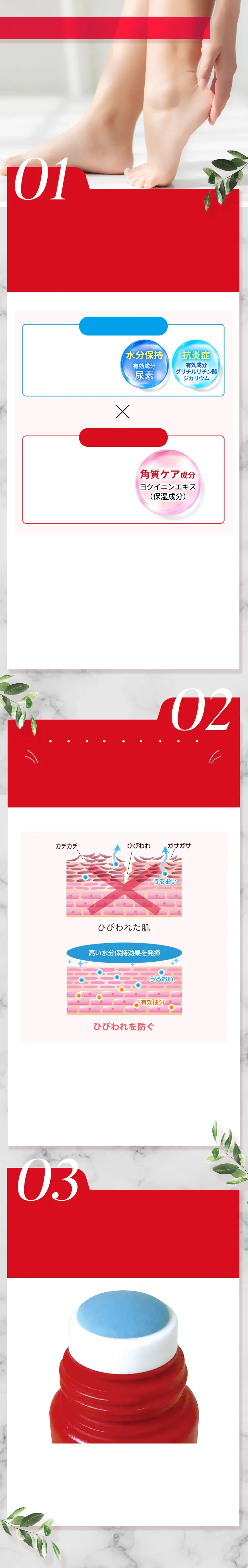 フットケアローションは角質ケアと保湿を同時に行うから、気になるかかとの乾燥やガサつき、ひびわれを防ぎます