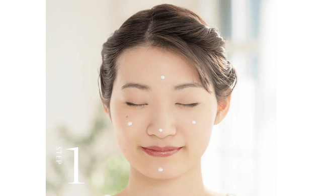 1.適量を手にとり、額・両頬・鼻・あごの5点に置きます。