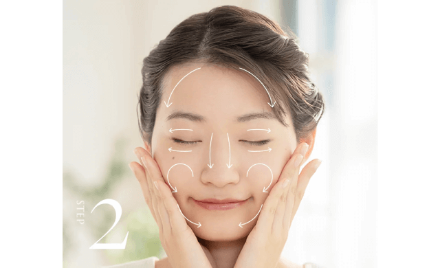 2.中指と薬指を使って顔全体にていねいに馴染ませます。