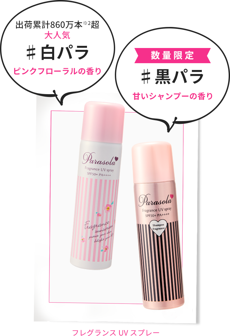 モテにイイ香りは必須♡リピーター続出の「ピンクフローラルの香り」の#白パラに、男女ともに好感が持てる「甘いシャンプーの香り」の#黒パラが数量限定で仲間入り。